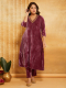 Pink Hand Embroidery Crushed Velvet V-Neck Kurta with Pant- Set of 2